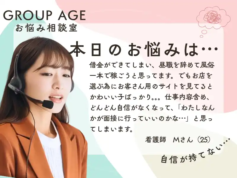 Mさん🌸「私って小柄で童顔で、胸だけ大きいんです。私の好みはK-POPアイドルみたいなキレイ系の高身長スレンダー体型なので、自分の容姿についてはあんまり魅力的じゃないな、っていうのはずっと思ってました。今回気になったお店のホームページにはすらっと手足の長いモデルさんみたいな女の子ばっかり載ってて、見れば見るほど「私なんかが面接行っても迷惑なのでは…」とか思ってしまって。。。なかなか連絡できませんでした」