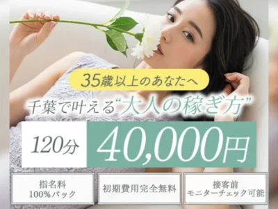 35歳以上の女性のみ在籍可能。千葉でもゆったりと“大人の稼ぎ方”が可能になりました。年齢を気にせず、あなたのペースでじっくり稼げるお店です♬